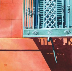 Eighteen of the show’s paintings are part of an ongoing series focusing on carefully chosen decorative elements in a specific building’s façade. These paintings are all the same size, with a consistent format, and matching frames.  They can be combined effectively in groups of two or more.