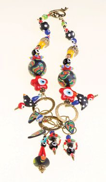 Caroline Alderman has been making intricately patterned polymer clay beads since 1990. The color is in the clay – they are not painted. She creates bold, unique jewelry, which is often described as wild, whimsical and wonderful.