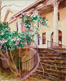 Alexandra Sharma’s exhibition of intimate and revealing watercolor paintings, Historic Belfair and Rose Hill, fulfills her fascination with finding scenes and objects in hidden or forgotten places. She says, “It was serendipitous when I met Iva Welton, long-time Hilton Head Island resident, former Director of Rose Hill Plantation, and a historian of the Lowcountry, and she gave me sole access to her private photograph and history archive of Belfair mansion and Rose Hill plantation house. The photos became a reference for my paintings and provided me an intimate and alluring glimpse of private, forgotten and lost places. Belfair, a mysterious great house with a fatal staircase and structural issues—now destroyed, and Rose Hill, a survivor
