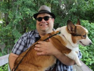 S.C. author Ron Baxley, Jr. with his emotional support Corgi, Ziggy. Ziggy, who was adopted from a shelter in Newberry, S.C. in 2013, has inspired major and minor characters in Ron’s graphic novel and fantasy novels.