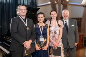 Second prize was awarded to violinist Mana Takahashi, age seventeen from Tampa, Florida,while third prize was awarded to eighteen-year-old double bassist Michael Stratford from Winston-Salem, North Carolina. A Special Achievement Award was presented to fourteen-year-old cellist Charlie Wyatt from Blacksburg, Virginia, who received a special $750 scholarship to the Philadelphia International Music Festival (PIMF). (All finalists received a PIMF scholarshipof at least $300.) A total of nine competitors performed in the finals of the competition on Saturday, January 25, 2025, which was livestreamed from St. Luke’s Anglican Church on Hilton Head Island. These outstanding solo string players were selected from over 40 total applicants from Alabama, Florida, Georgia, North Carolina, South Carolina, Tennessee, and Virginia. The other finalists were violinists Lauren Yejin Kang (14; Vestavia Hills, AL), Carley Newman (16;Trussville, AL), Stephanie Suedbeck (16; Greenville, NC), and cellists Seogyeom Kim (17; Fortson, GA), and Seunghoon (Ryan) Pi (16; Suwanee, GA).