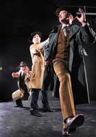 It takes madcap staging to pack all of the film’s action — the murders, shootings, train chases and plane crashes — into a purposely open set. But the strategy works to the delight of audiences who derive maximum pleasure from the show’s minimalistic trappings.