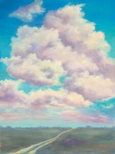 Inspired by a lifelong connection to nature, King’s work reflects a sense of joy, spirituality, and connection to healing energy. “I grew up in a chaotic atmosphere, and the only time I felt peace was [lying] on the ground looking up at the clouds in the sky,” she says. That early sense of quiet continues to influence her work, where clouds and movement appear as recurring elements. “Nature has always been my inspiration. I could sit and watch clouds for hours.”