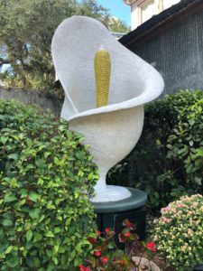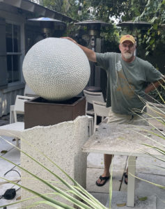 Wally with ‘Pearl’ a stone and tabby fountain purchased by The Pearl restaurant in Bluffton