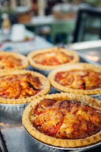 the Lowcountry. It’s a go-to destination for freshly baked Lowcountry favorites, like tomato pie and buttermilk cheddar biscuits. It’s also a restaurant serving breakfast, brunch, and lunch classics, including: avocado toast; brioche French toast; green tomato pickle stack; big fat French salad (warm, red-skinned potatoes, bacon, goat cheese, and tomatoes over romaine dressed with a lemon Dijon vinaigrette); po boys; and the ever-popular Ooey Gooey, with melted pimento cheese, applewood bacon, and garlic pepper jelly. Plus, it’s a take-away café, with comfort food specialties like pimento cheese, chicken salad, and pot pie; a cannery featuring house-made sauces, pickles, dips, jams, chutneys, and chow chows; a sundries shop selling grits, teas, and granola; and it’s even a kitchen and home decor shop to take home a piece of the Lowcountry.