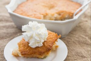 “Oh hell, Clairee, you don’t need a recipe. It’s just a cup of flour, a cup of sugar and a cup of fruit cocktail WITH the syrup, stir and bake in a hot oven ‘til golden brown and bubbly. I serve it with ice cream to cut the sweetness.” – Truvy Jones