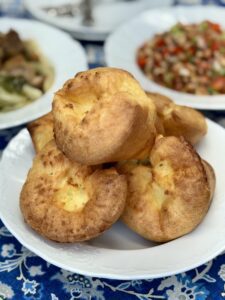 Place milk, flour, eggs, and salt in a blender. It’s important that the eggs and milk are not cold. If needed, warm the milk for about 30 seconds in the microwave. Blend all ingredients until the batter is very smooth. Let the batter rest for 15 to 20 minutes. Place oven rack in the center of oven. Preheat oven to 450 degrees. Spray popover pan with cooking spray. Place popover pan on a baking sheet. Place 1 teaspoon of cold butter in each cup of the popover pan. Place pan on baking sheet in hot oven for 1 to 2 minutes, just long enough to melt the butter. Do not stir the batter. Evenly divide the batter into the prepared pan. Each cup should be filled approximately halfway. Bake for 20 minutes until puffed and golden brown. Reduce heat to 350 degrees and continue baking for 10 more minutes until crispy. Do not open the oven door during baking. Serve warm. Makes 6.