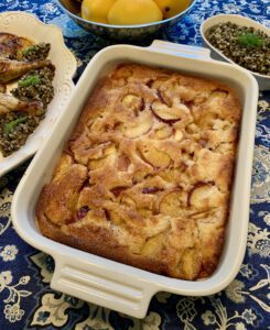 Sprinkle ¼ cup of the sugar over the peaches and let sit while melting the butter. In an 8×11-inch baking dish or decorative oven-to-table dish, melt butter in the oven while the oven preheats to 375 degrees. (The butter crisps the edges, so I (Nathalie) say “the bigger the dish, the better.” If you prefer a deeper cobbler, use a smaller baking dish.) Whisk together the flour, milk, and remaining sugar. It can be a bit lumpy. When the butter has melted, remove the hot pan and pour batter into the hot butter in the pan. Don’t worry if the batter puffs up a bit on the sides. Sprinkle the peaches evenly over the top of the batter. Bake until the batter has risen around the fruit, the top is light brown and “cobbled” looking, and the sides are darker brown, about 30 to 45 minutes. An inserted fork should come out clean. Serve hot. It can be made ahead and refrigerated or frozen. Reheat before serving. Serves 4 to 6.