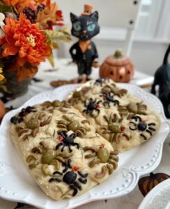 Focaccia with Olive Spiders