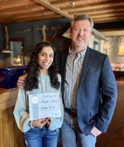 Beaufort Exchange Club Youth of the Month (for March) Alisha Arora with Jonathan Haupt