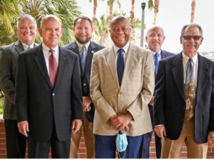 USCB Chancellor Dr. Al Panu (front row, center) and (left to right) Dr. Rich Gough, President of TCL; Warren Parker, Chairman of South Coast Cyber Center; Stephen Murray, Beaufort Mayor and Vice Chairman of South Coast Cyber Center; John O’Toole, Executive Director of Beaufort County Economic Development Corp; and Kevin Klingler, Chairman of Beaufort Digital Corridor will collaborate closely to develop cybersecurity academic programs and workforce development.