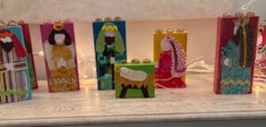 “Mimi, you have to open your Christmas present!” he insisted, explaining that it was for now, not later. Inside a big holiday bag was a set of painted wooden blocks, each one decorated with glitter, scraps of fabric and plastic jewels. Clearly a glue gun and a very patient art teacher played a role in creating this little manger scene.